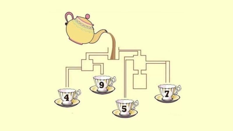 Bu zeka oyunu, birden fazla çay fincanına giden bir dizi birbirine bağlı boruyu içerir.