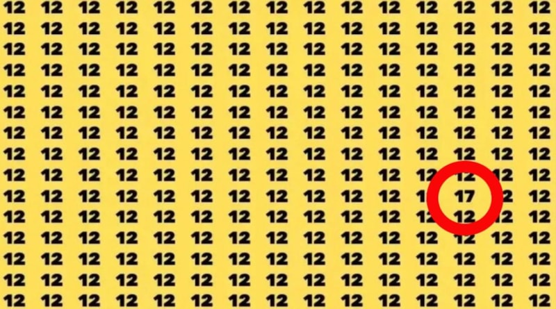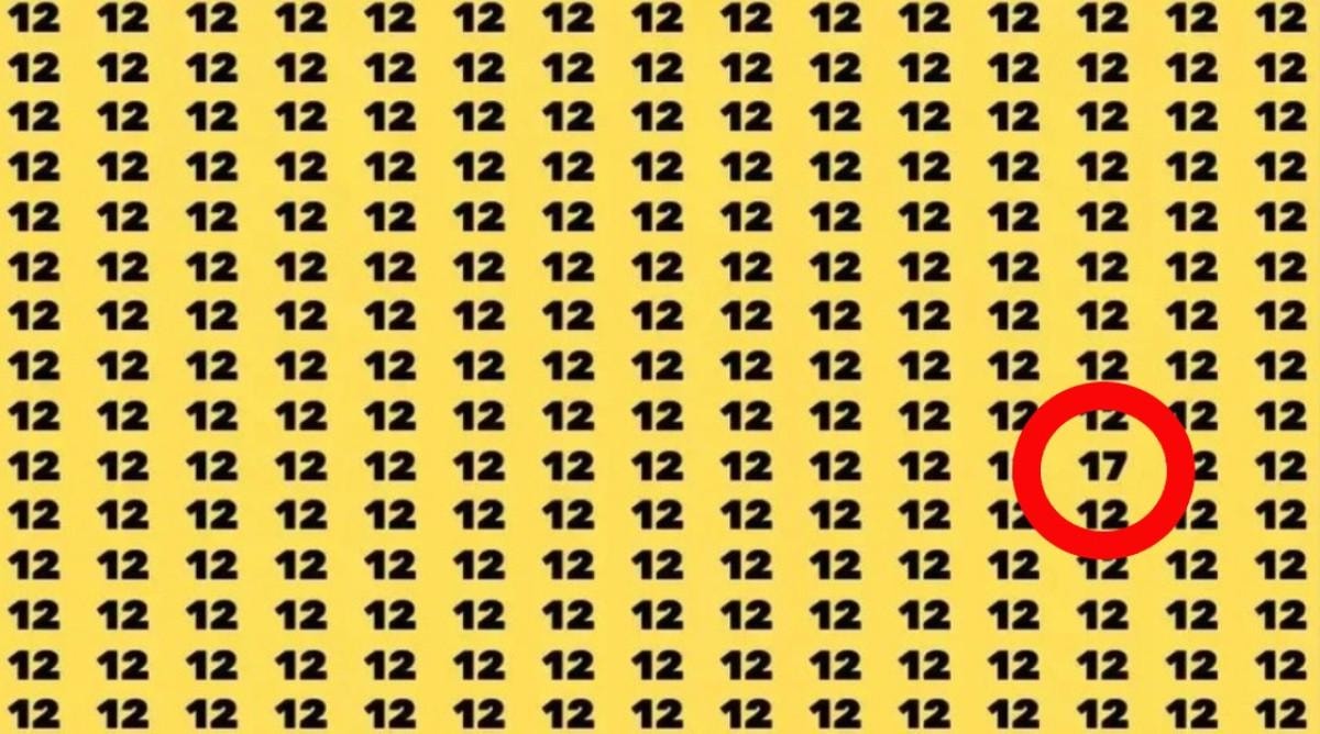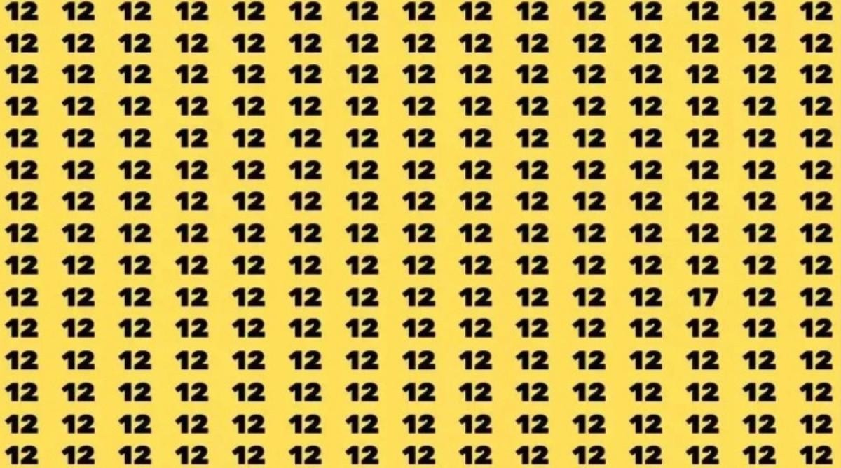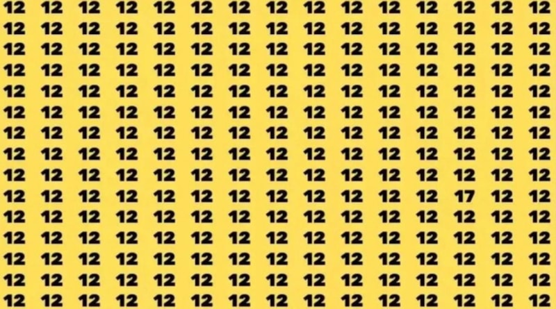 Resimde yüzlerce '12' sayısı bulunuyor. Fakat hepsinin arasında bir tane farklı sayı var.