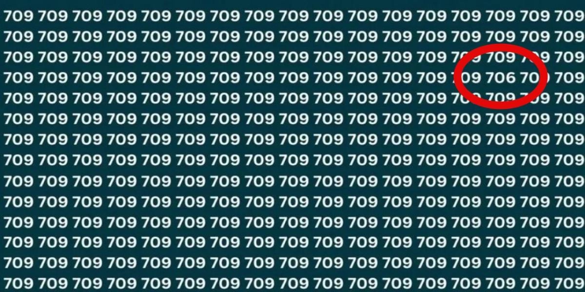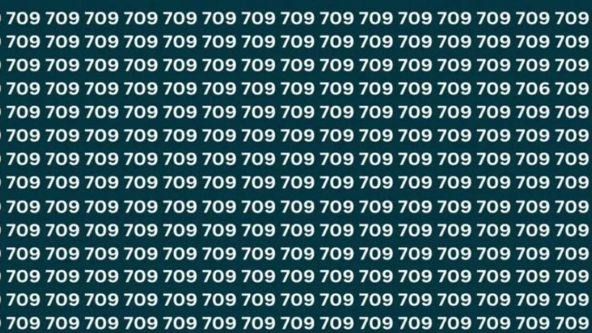 Resimde yüzlerce '709' sayısı bulunuyor. Fakat hepsinin arasında bir tane farklı sayı var.