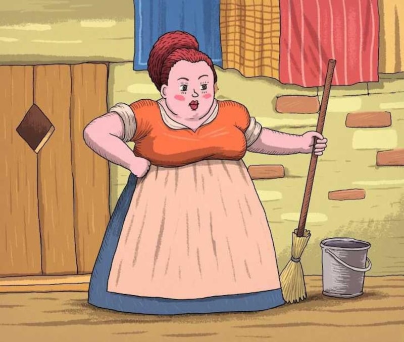 Yukarıda paylaşılan görselde orta yaşlı bir kadın temizlik yapıyor. Ancak yalnız değil!