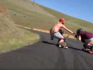 İki çılgın kızın, kaykay için hazırlanan yolda yaptıkları gösteri cesaret isteyen cinsten...