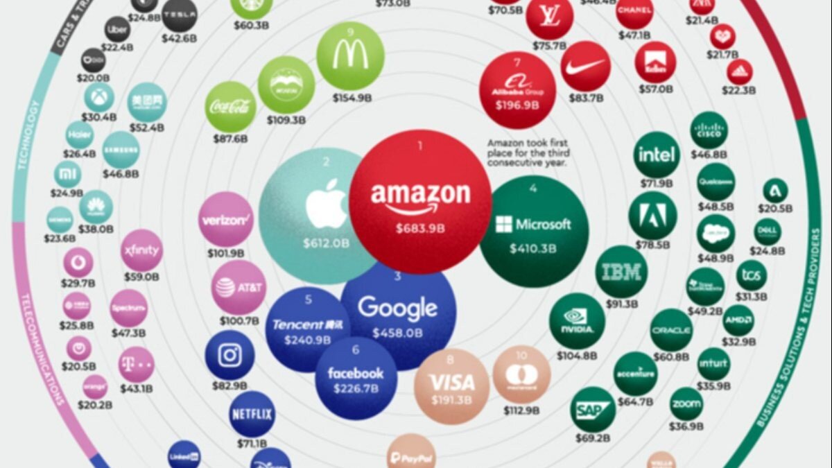 Listenin ilk sırasında 683 milyar dolar ile ABD'li e-ticaret şirketi Amazon yer aldı.