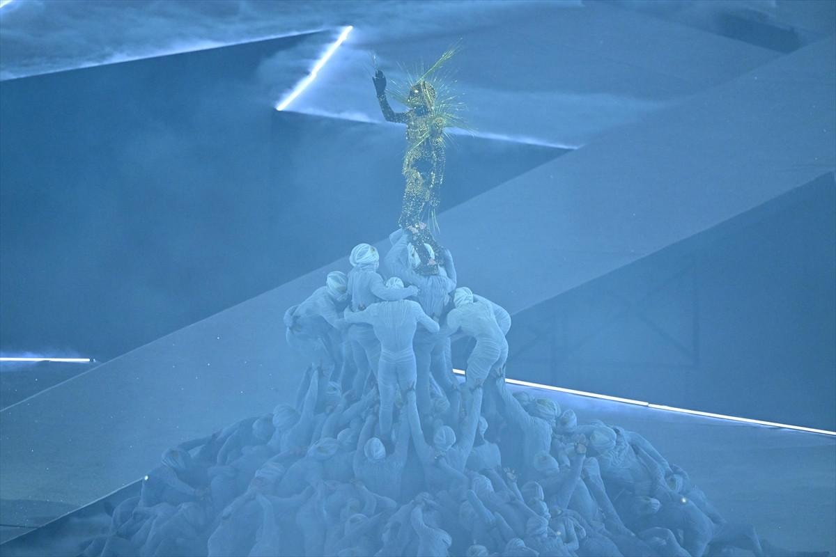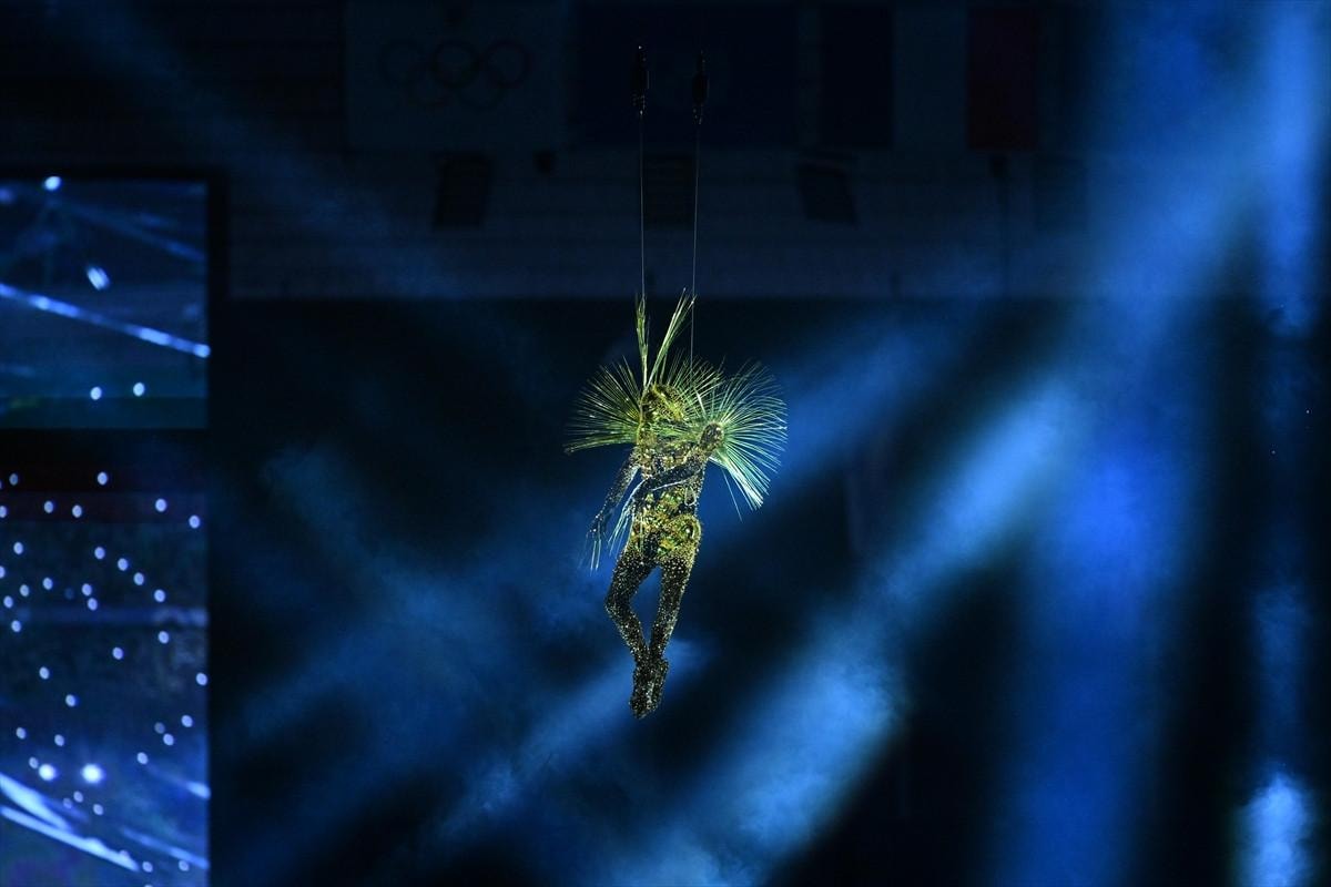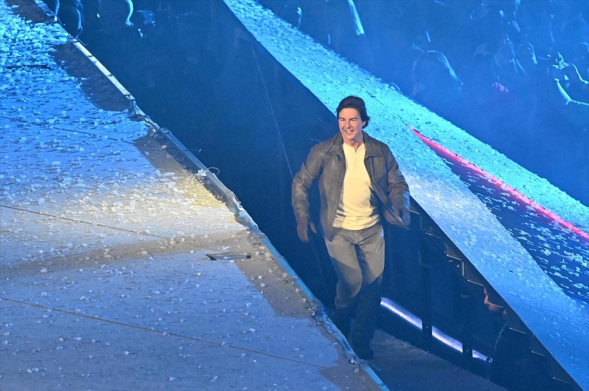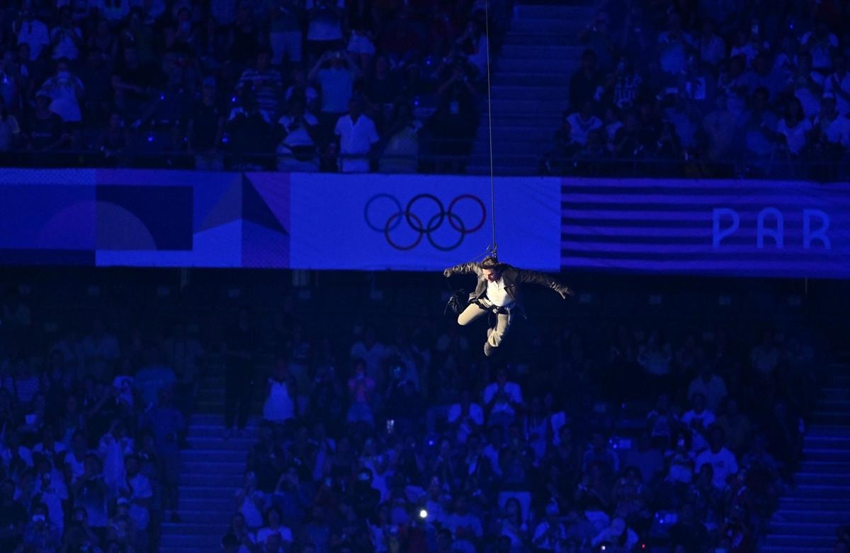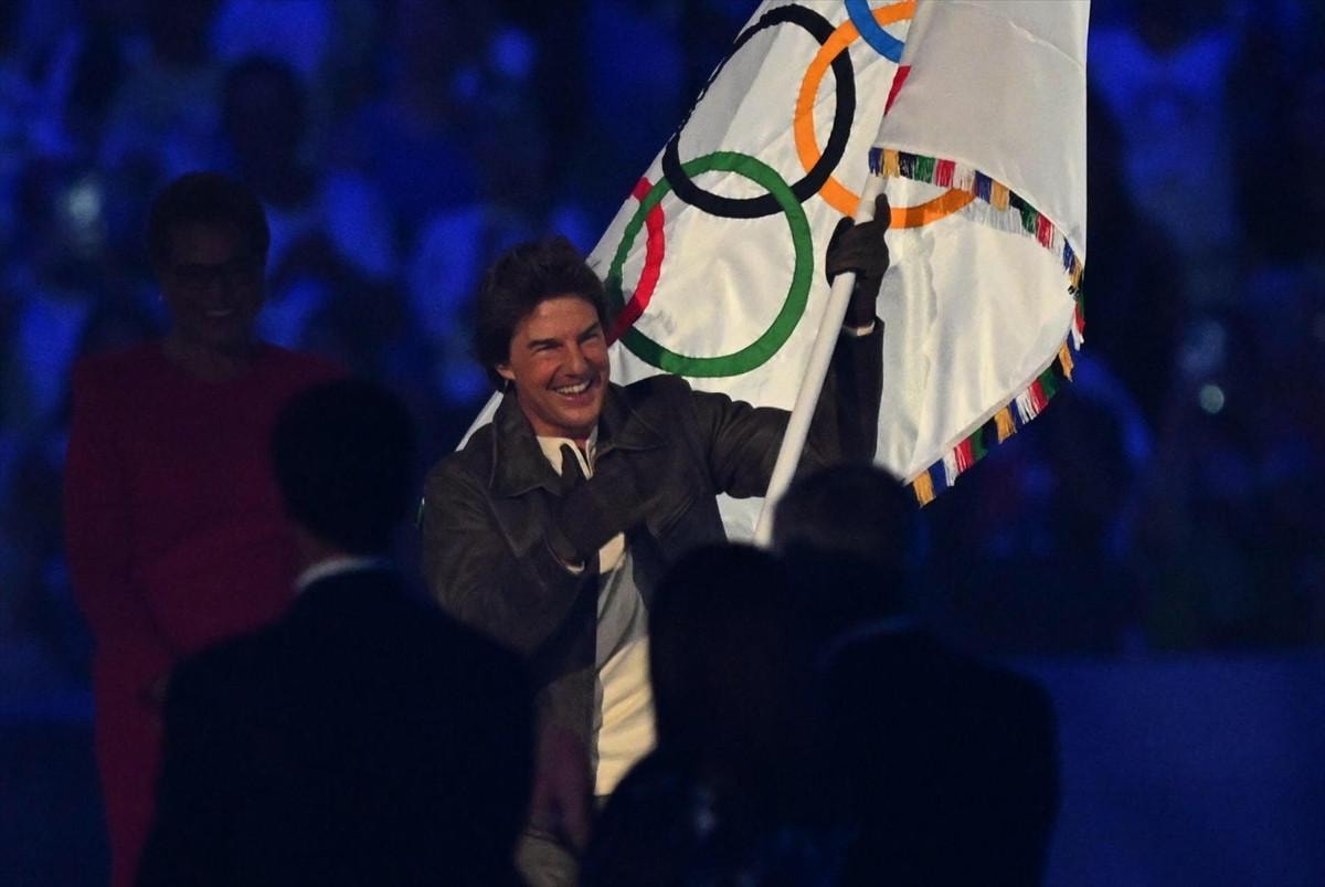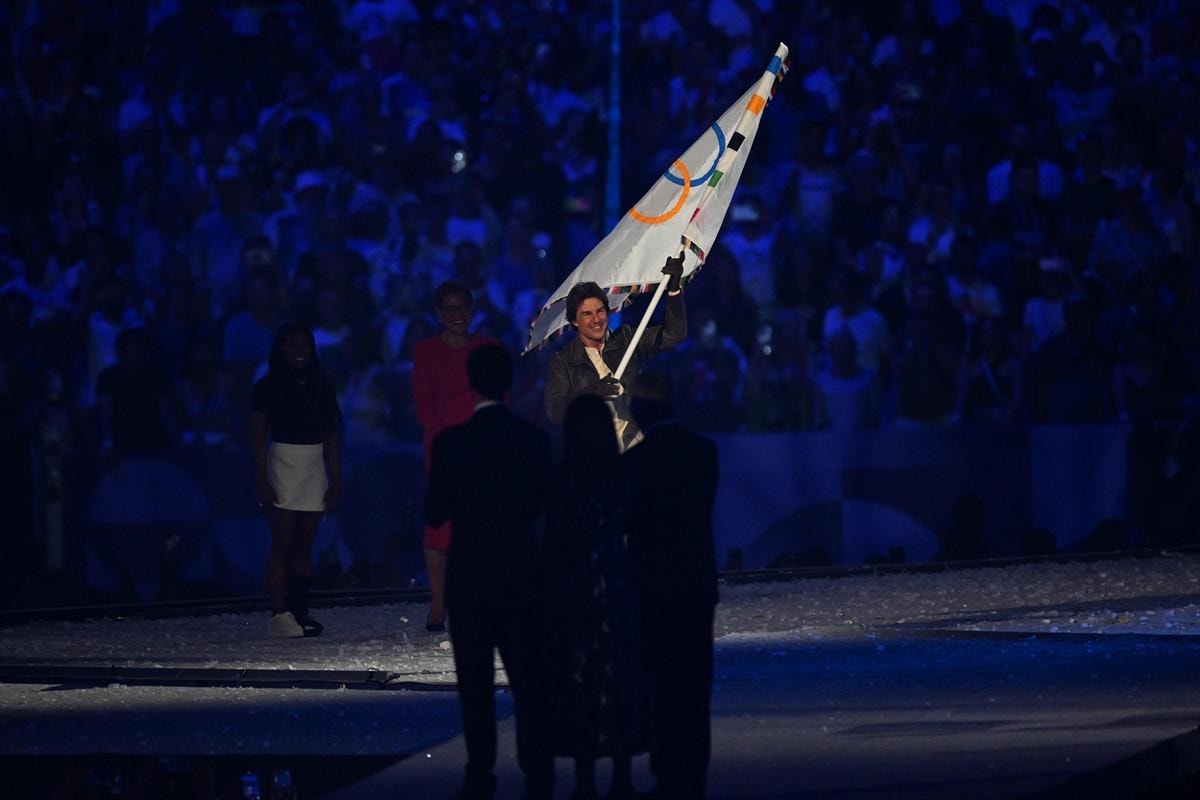 Simon Biles, olimpiyat bayrağını stadın çatısında kurulan düzenekle sahneye inen ABD'li sinema oyuncusu Tom Cruise'a verdi. Ünlü aktör, motosikletle sahneden ayrılırken hazırlanan senaryo çerçevesinde ABD'de dalgalandırılan bayrak statta ekranlara yansıtıldı.