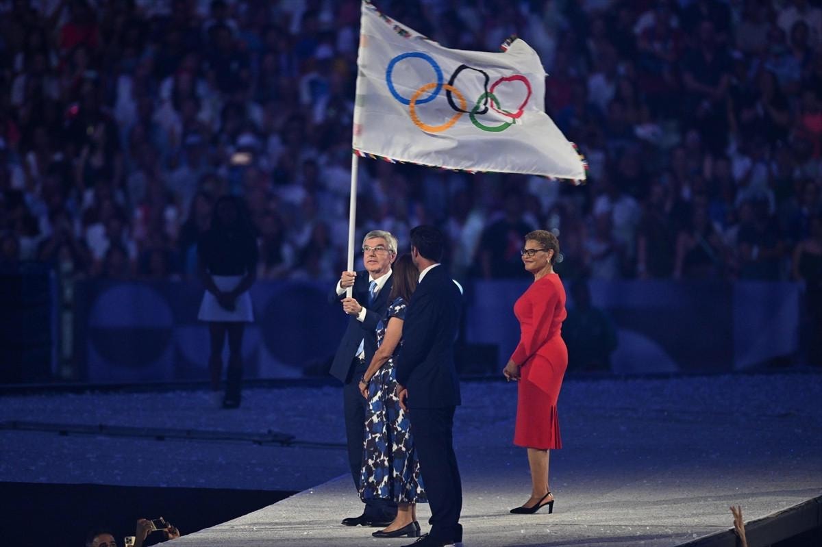 Paris Belediye Başkanı Anne Hidalgo, olimpiyat bayrağını 2028 Olimpiyat Oyunları'nı düzenleyecek Los Angeles Belediye Başkanı Karen Bass'a verdi. Karen Bass bayrağı, ABD'li yıldız cimnastikçi Simon Biles ile birlikte aldı.