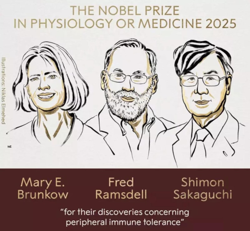 2025 Nobel Tıp Ödülü'nü, "periferik bağışıklık toleransı" keşiflerinden dolayı Mary Brunkow, Fred Ramsdell ve Shimon Sakaguchi kazandı.