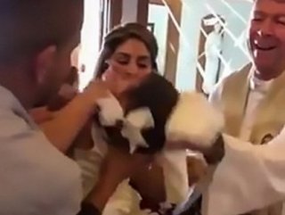 3 yaşındaki çocuk kendisini vaftiz eden papaza küfür etti İZLE