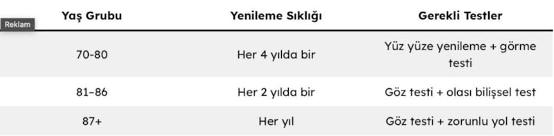 YAŞA GÖRE EHLİYET YENİLEME KURALLARI