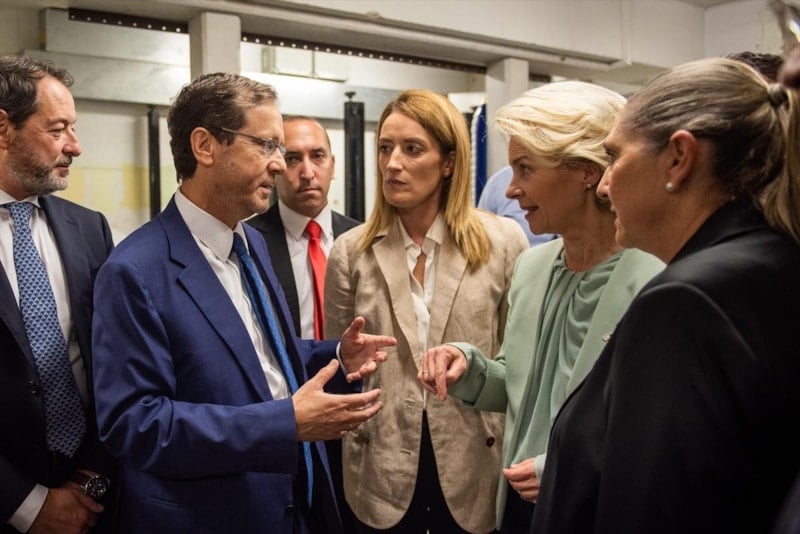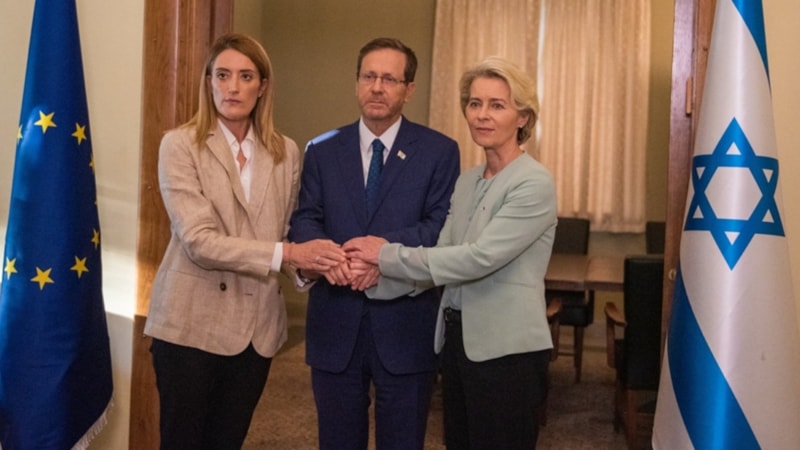 İsrail ordusunun Gazze'ye saldırılarının yoğunlaştığı bir dönemde görüşen Herzog, Leyen ve Metsola, ortak açıklama yapmak üzere kameraların karşısına geçti.