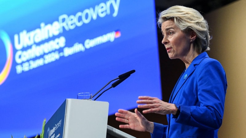 Von der Leyen, Almanya'nın başkenti Berlin'de katıldığı Ukrayna İyileştirme Konferansı'nda yaptığı konuşmada "Harkiv, Avrupa'dır. Ukrayna, Avrupa'dır. Birliğimiz sizin evinizdir." dedi.