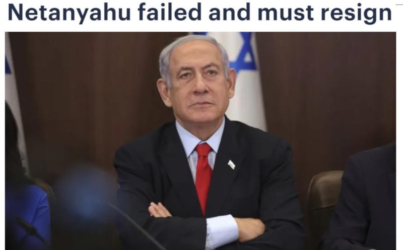 ABD merkezli The Hill internet sitesinde yayınlanan "Netanyahu başarısız oldu ve istifa etmeli" başlıklı haberde, İsrail Başbakanı'ndan koltuğunu terk etmesi istendi.