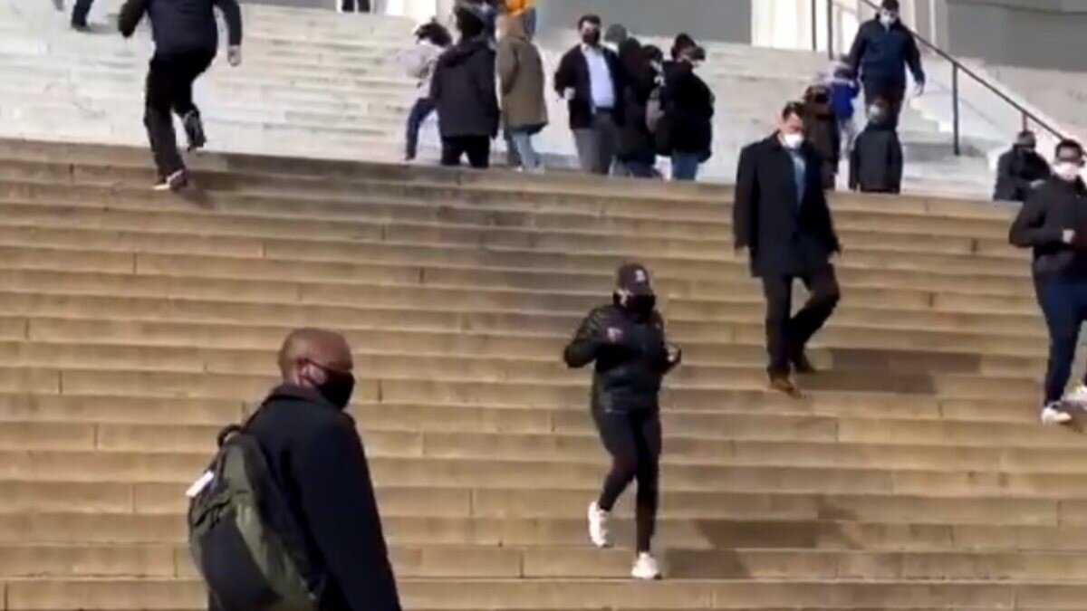 Yoğun gündemde fırsat bulmuşken Lincoln Anıtı'nın merdivenlerde tempolu şekilde yürüyüş yapan Harris, Rocky Balboa'ya benzetildi.