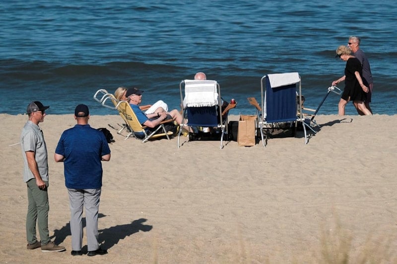 Pazar öğleden sonrasını geçirmek üzere yeniden Delaware eyaletindeki Rehobot Plajı'na giden Biden'a birkaç kişi eşlik etti.