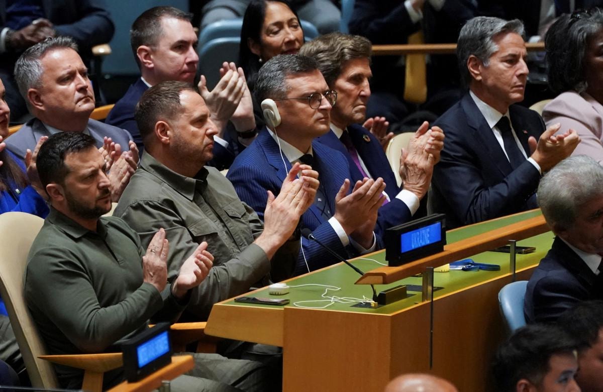 Ukrayna Devlet Başkanı Vladimir Zelensky, Genel Kurul'da beraberindeki heyetle birlikte Biden'ı dinleyenler arasındaydı.