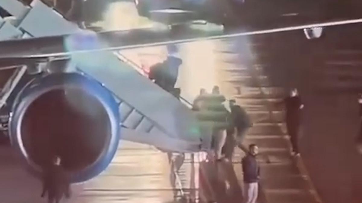 Biden'ın uçaktan sağ salim indiği anlar da farklı kayıtlarda görülüyor.