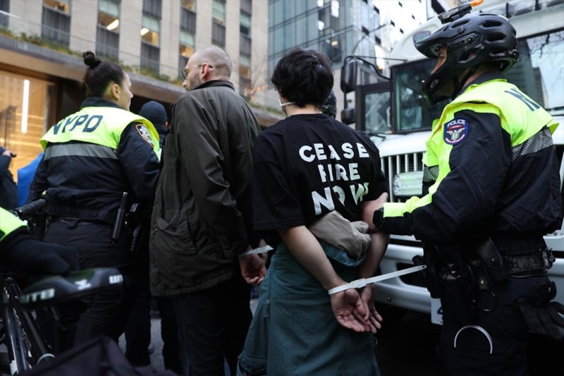 ABD'nin İsrail'e desteğinin sonlandırılmasını isteyen göstericiler, acil ateşkes çağrısında bulundu. Polis, 50'ye yakın göstericiyi gözaltına aldı.
