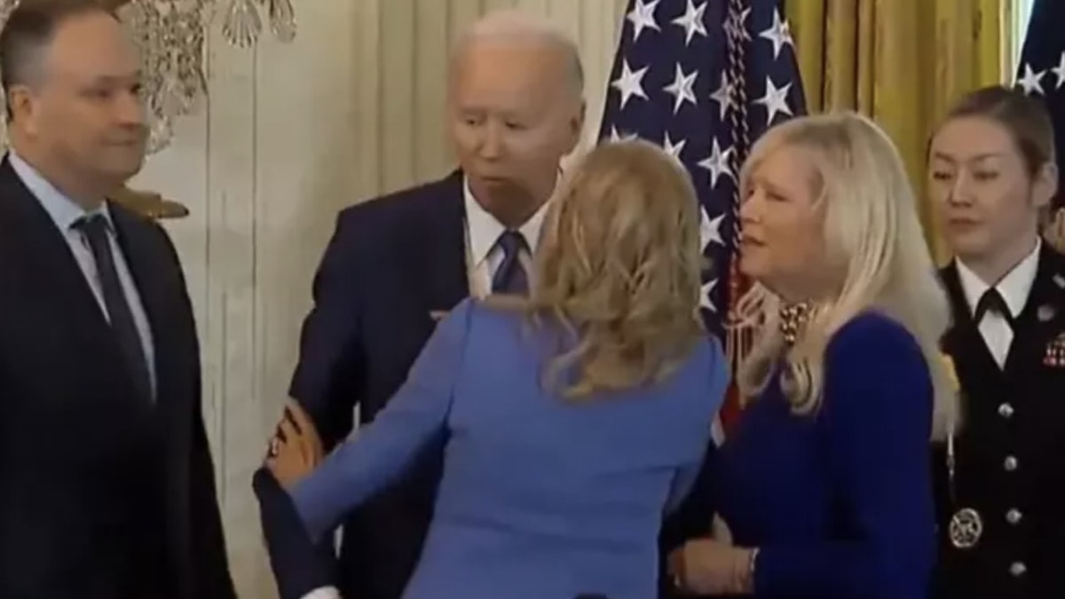 Jill Biden hemen araya girerek ikiliyi ayırdı.