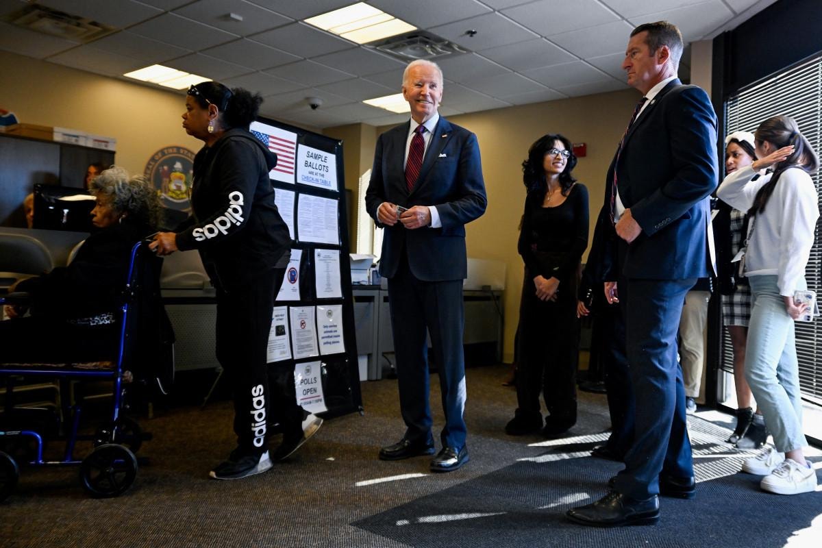 Amerikan medyasının yoğun ilgi gösterdiği erken oy kullanma işlemi için seçim merkezine giden Biden, burada diğer Amerikalılarla birlikte sıraya girdi ve seçmenlerle sohbet etti.