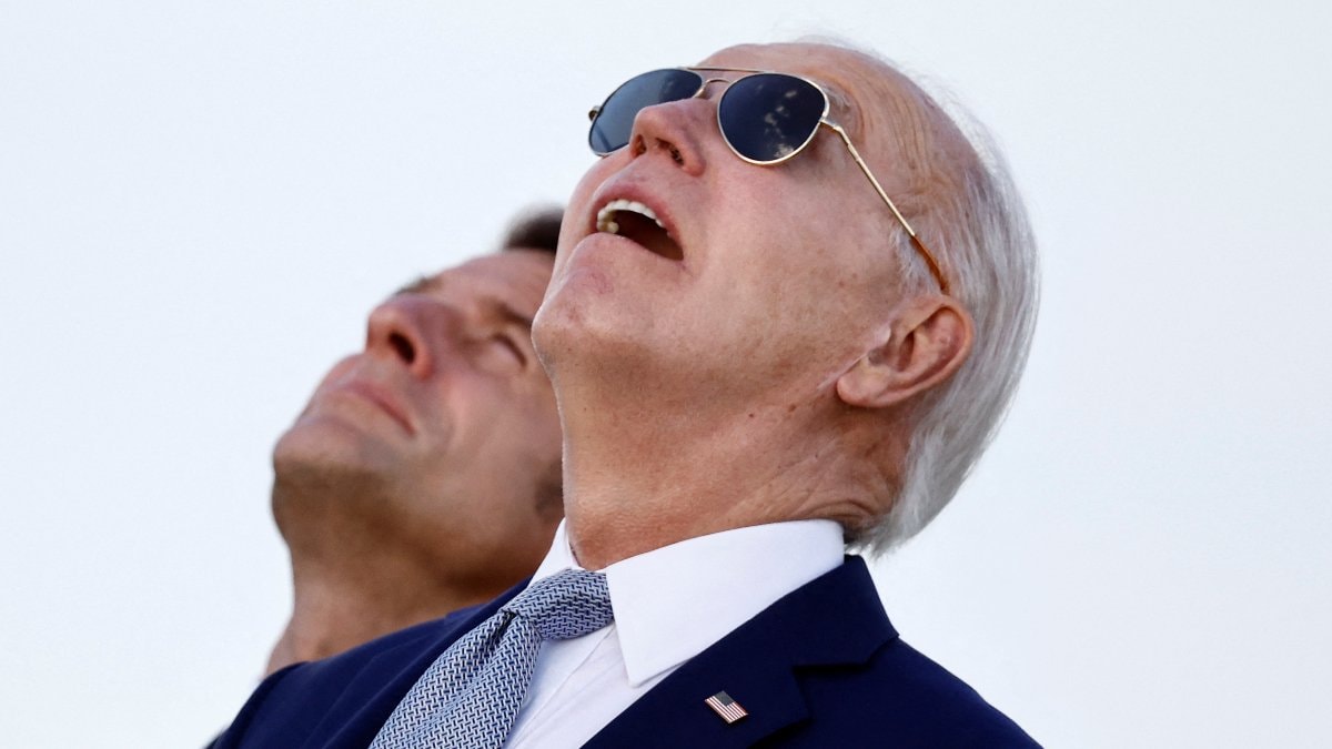 En yaşlı ABD başkanı ünvanını taşıyan Biden, o anlarda çekilen videoda, yanlarındaki bir paraşütçüyü izliyormuş gibi görünüyor.