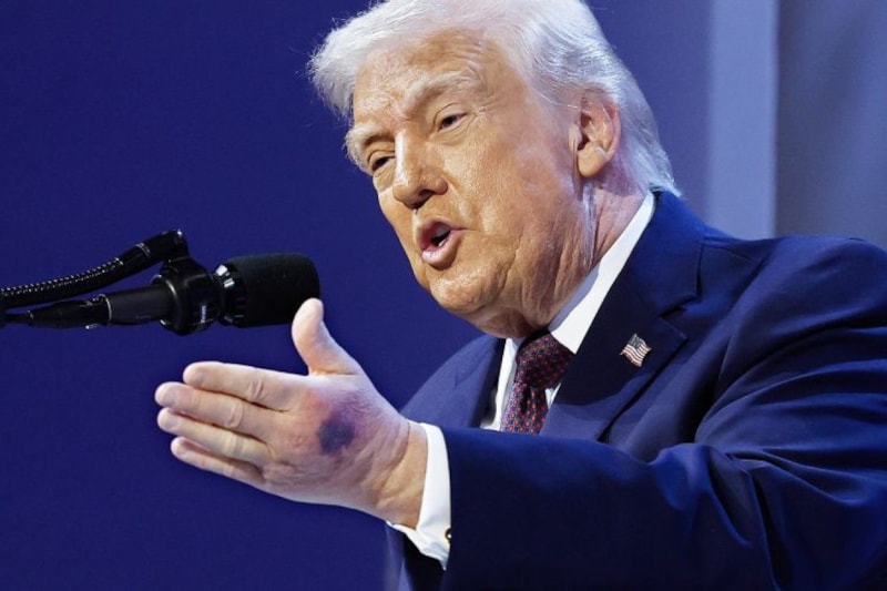 Törende Trump’ın sol elinde görülen morluk dikkatlerden kaçmadı.