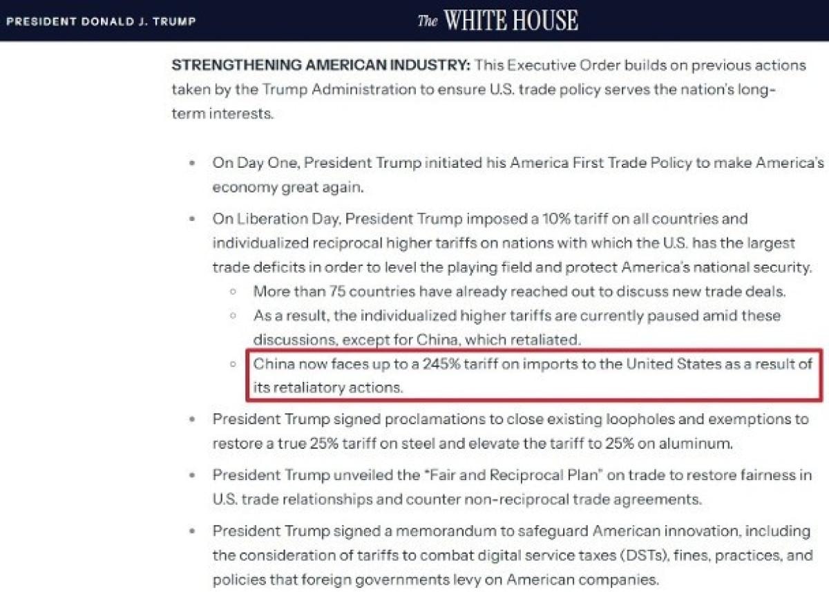 Yönetim, Çin'in olası misillemelerinin devam etmesi durumunda bazı ürünlerde tarife oranlarının yüzde 245'e kadar çıkabileceği vurguladı.