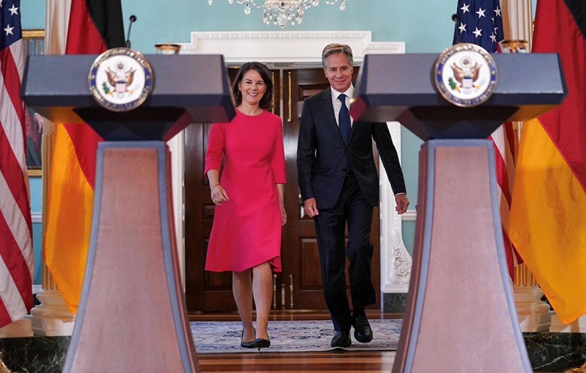 Blinken, Alman mevkidaşı Annalena Baerbock'u ağırladı. İkili, birlikte basın toplantısı düzenledi.