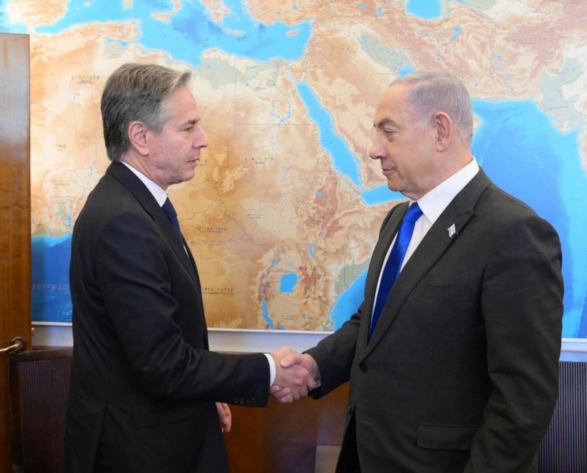 Blinken, İsrail Başbakanı Binyamin Netanyahu ile Başbakanlık Ofisi'nde bir araya geldi. İlk olarak özel bir görüşme gerçekleştiren ikili, daha sonra heyetlerarası görüşmeye katıldı.