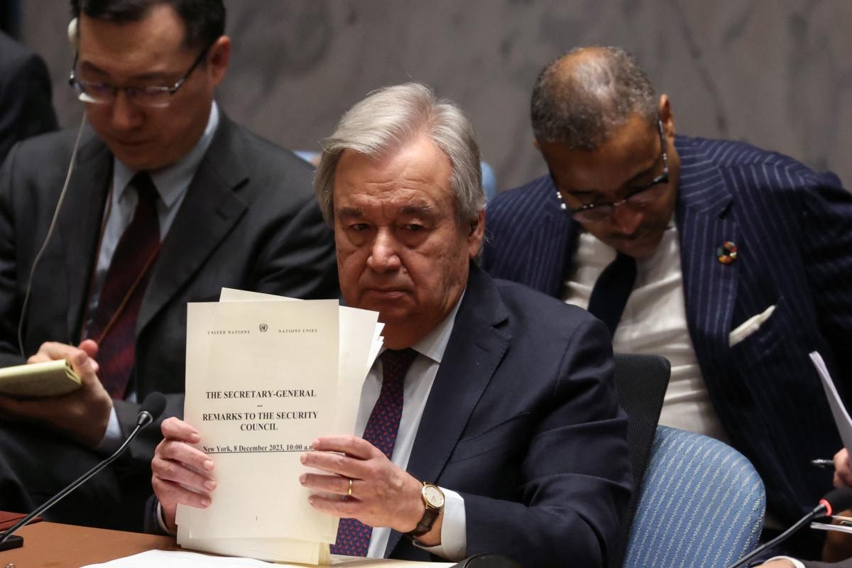 Genel Sekreter Guterres, görev süresi boyunca yetkisini ilk kez kullanarak Gazze’deki insani felaketin önlenmesi için BM Şartı'nın 99. maddesini işletmiş ve 6 Aralık'ta BMGK'ye mektup göndermişti.