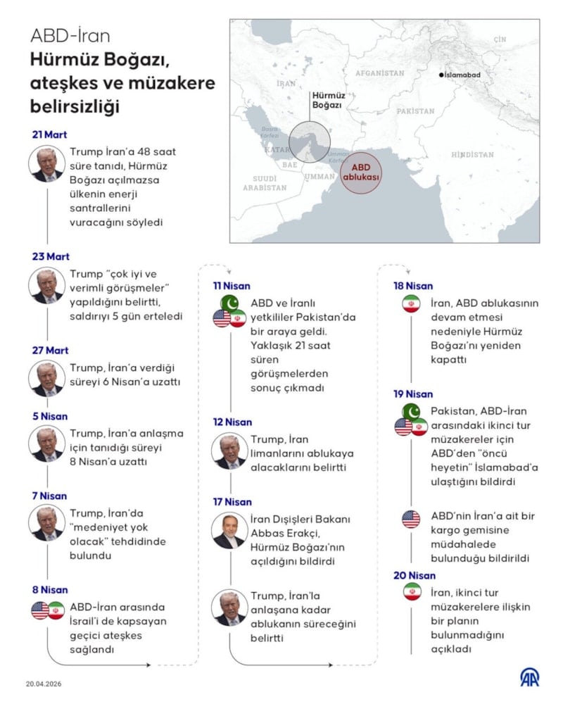 ABD ile İran arasında Pakistan ev sahipliğinde yapılması beklenen ikinci tur müzakerelerine yönelik 'Hürmüz Boğazı' temelli belirsizlik sürüyor..