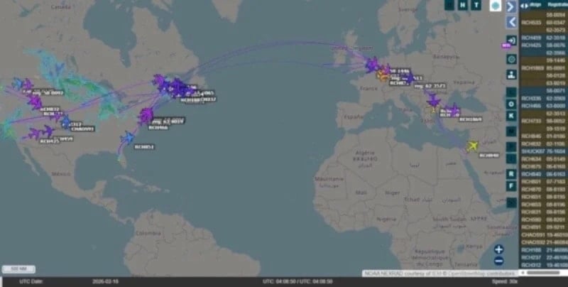 Katar'daki El Udeid Hava Üssü'nden görev uçuşları yapan bir RC-135 Rivet Joint sinyal istihbarat uçağı da Akdeniz'deki Girit adasına taşındı.