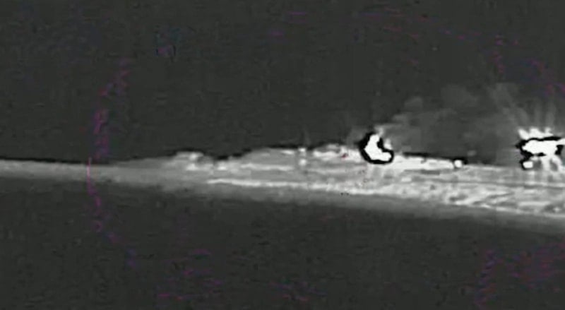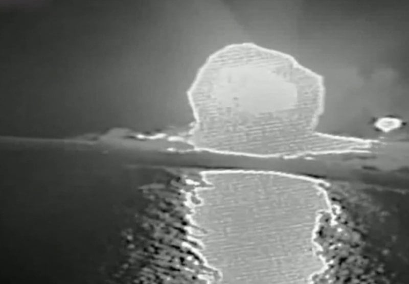 Açıklamada, "İki gün önce İran rejiminin Umman Körfezi'nde 11 gemisi vardı, bugün ise sıfır gemisi var" ifadesi kullanılırken paylaşılan siyah-beyaz videoda bir gemiye füze isabet ettikten sonra göğe alevlerin yükseldiği görüldü.