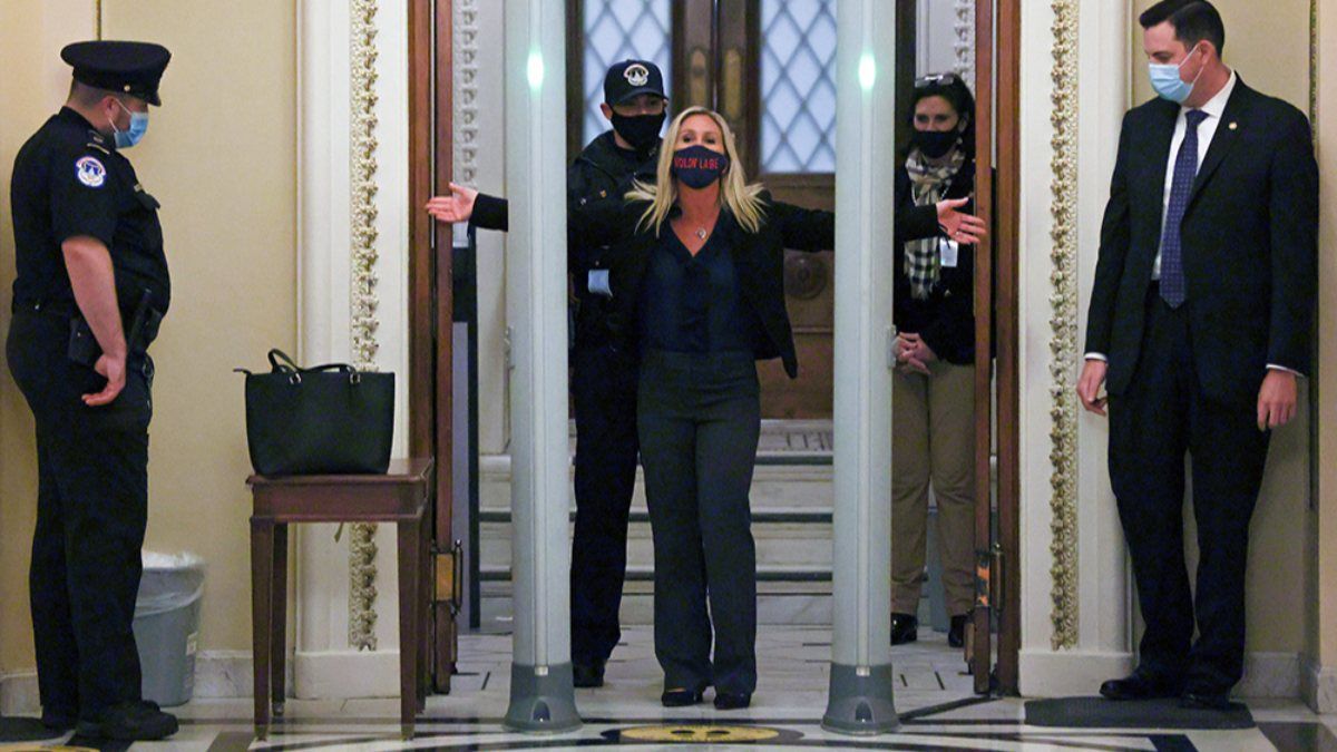 Temsilciler Meclisi Başkanı Demokrat Nancy Pelosi ve Cumhuriyetçi Marjorie Taylor Greene'ye, tedbirler kapsamında oluşturulan güvenlik kontrol noktasında üst araması yapıldı.