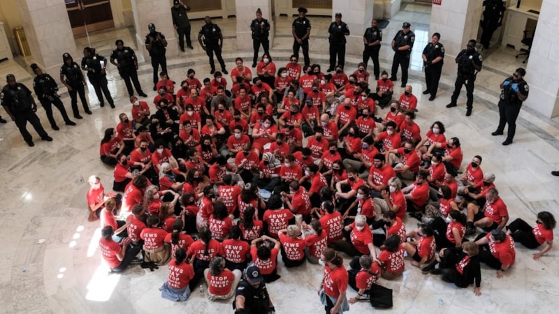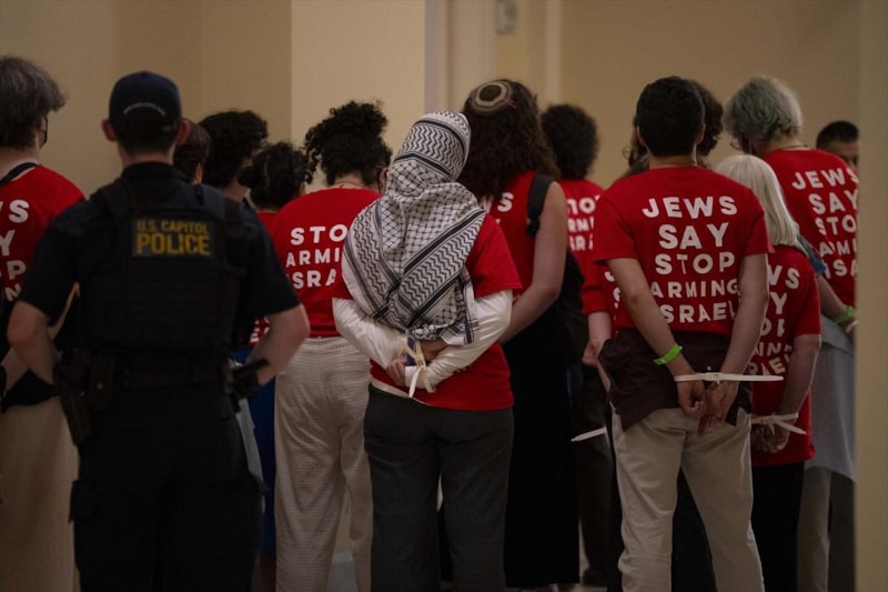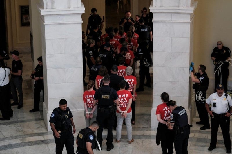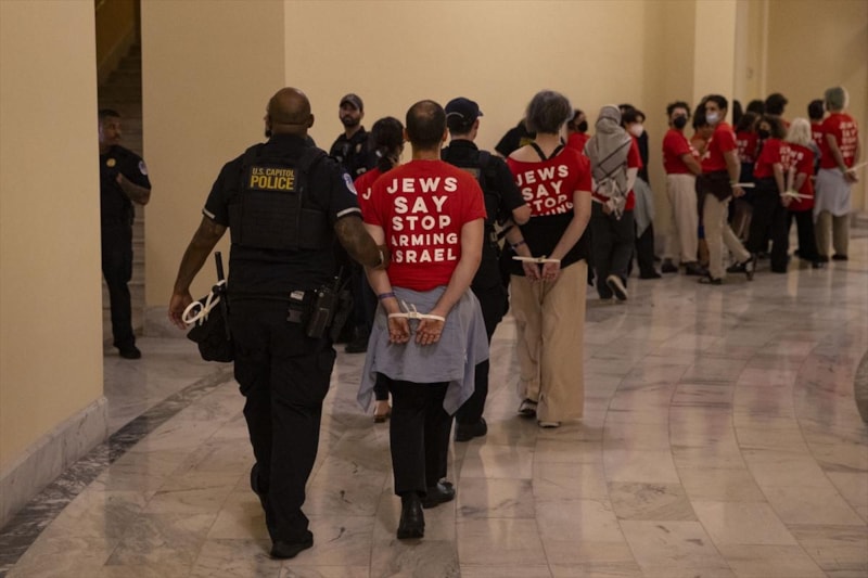 Gösterinin ardından Kongre Binası'nda Cannon Ofisi içinde bir araya gelen ve çoğunluğu Yahudi olan Filistin yanlısı protestocular, kolluk kuvvetleri tarafından tutuklandı.