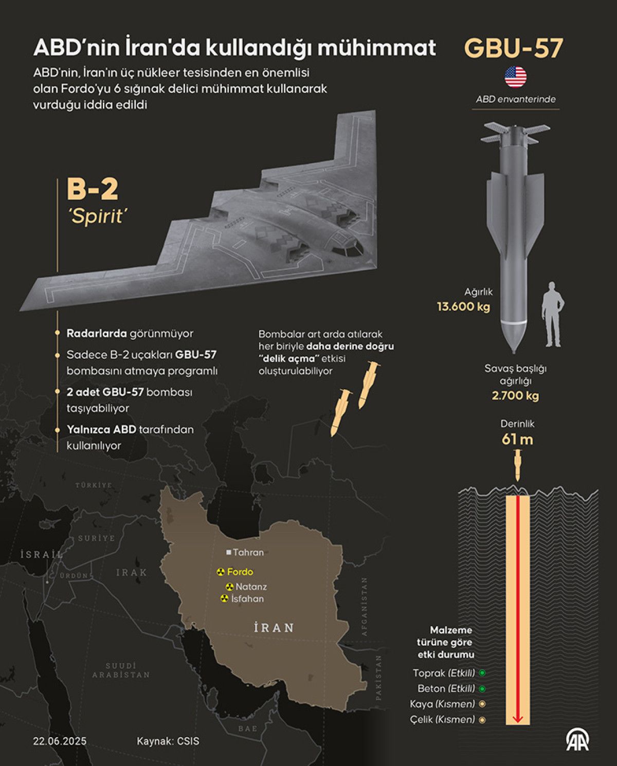 Geçtiğimiz ay düzenlenen saldırılarda, İran’ın Fordow, Natanz ve İsfahan’daki nükleer zenginleştirme tesisleri hedef alınmıştı. ABD’li yetkililer, özellikle Fordo tesisine yönelik saldırının İran’ın nükleer programını en az iki yıl geriye taşıyacak nitelikte olduğu görüşünde. Bu tesis, uzun süredir İran’ın nükleer hedeflerinin kilit unsurlarından biri olarak değerlendiriliyordu.