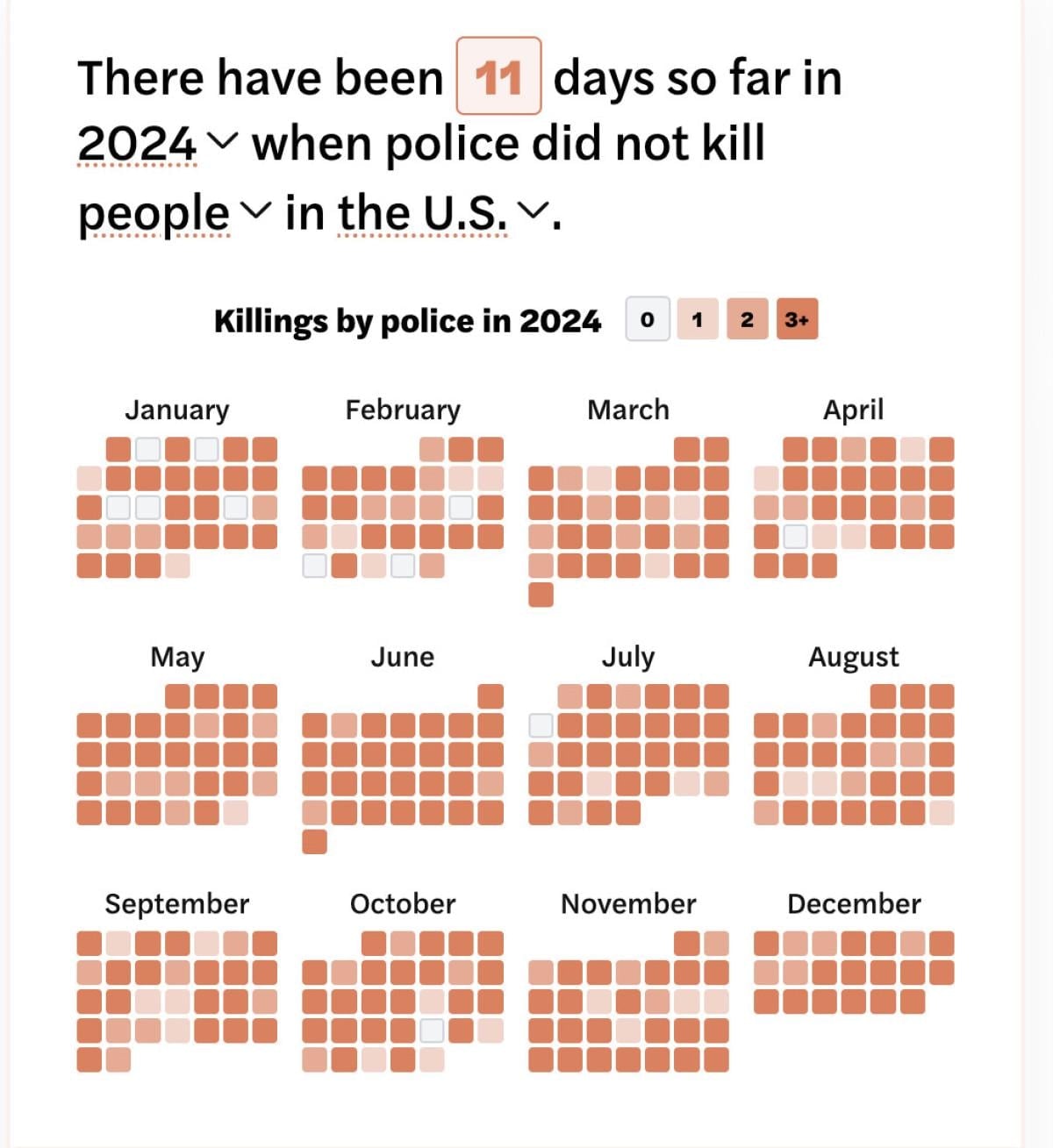Mapping Police Violence verilerine göre, ABD polisi 2024 yılı boyunca sadece 13 gün kimseyi öldürmedi.