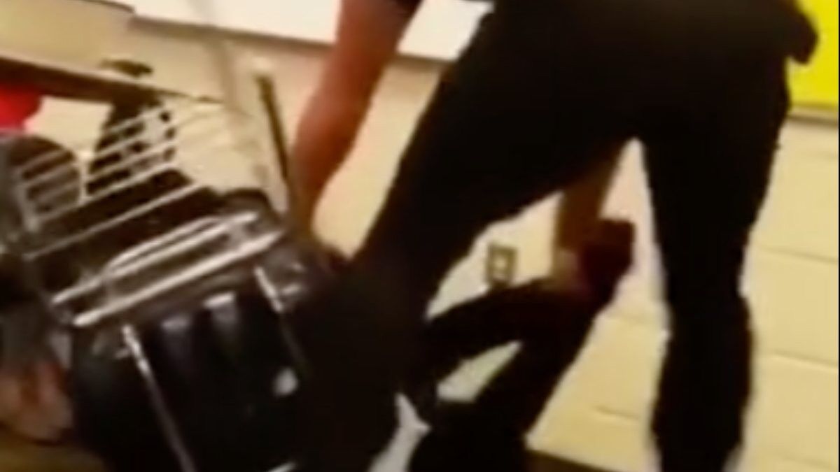Polis memuru, öğrenciyi oturduğu sırasıyla beraber yerden yere vurdu.