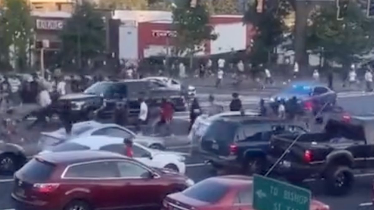 Birçok kişi ezilme tehlikesi geçirirken polis kamyoneti kovalamaya başladı.