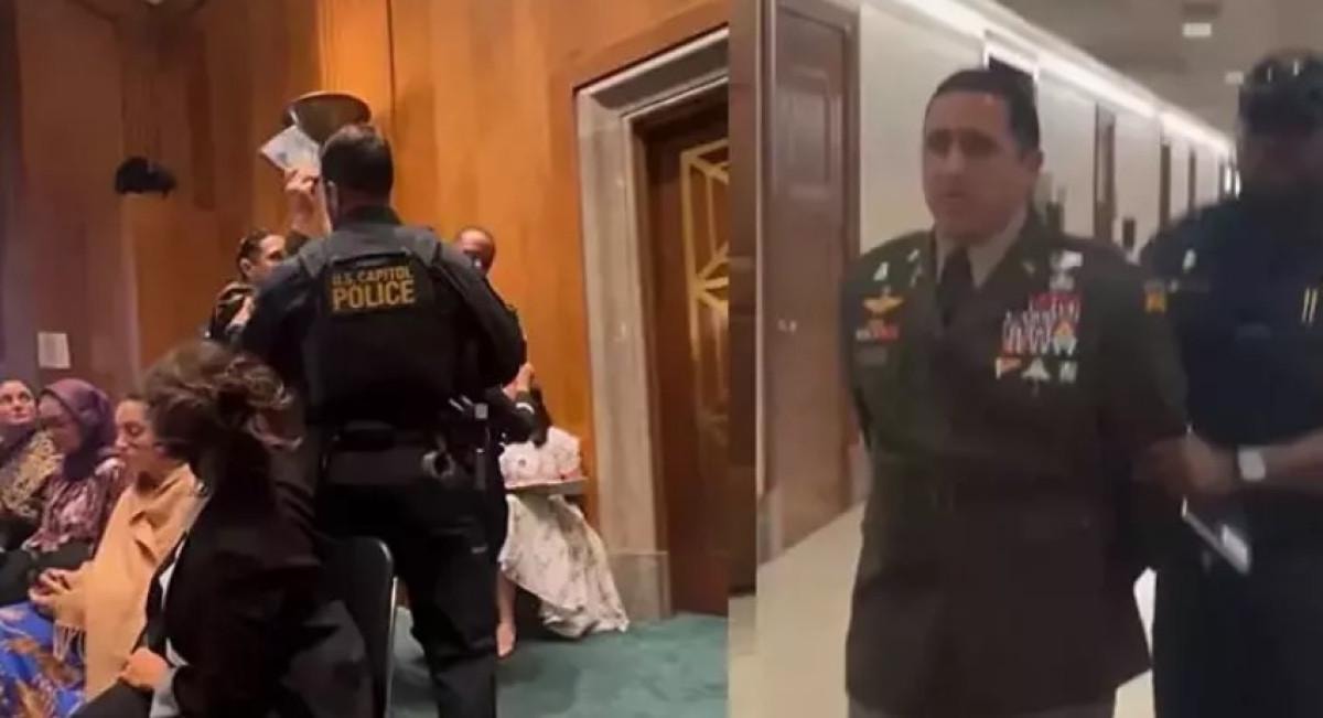 ABD Senatosu’nda Çarşamba günü yapılan oturumda, eski ABD subaylarının Gazze’deki insan hakları ihlallerini protestosu gündeme damga vurdu. İki subay, güvenlik görevlileri tarafından salondan zorla çıkarıldı.