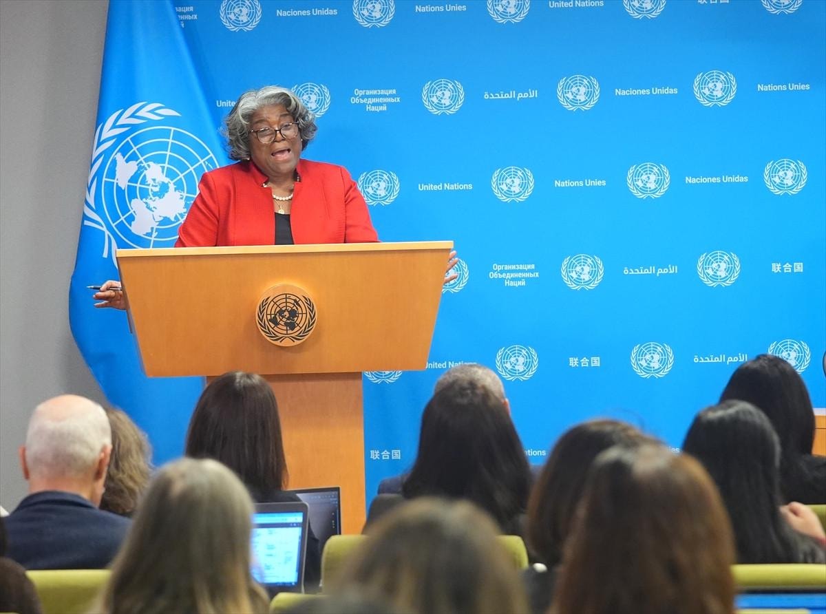 ABD'nin Birleşmiş Milletler (BM) Daimi Temsilcisi Linda Thomas Greenfield, ABD'nin BMGK dönem başkanlığını İngiltere'den devralması vesilesiyle basın toplantısı düzenledi.