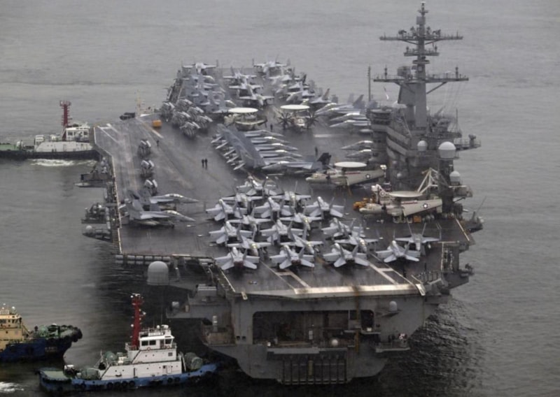Güney Kore donanmasından yapılan açıklamada, uçak gemisinin, güdümlü füze taşıyan USS Halsey ve savaş gemisi USS Daniel Inouye ile birlikte deniz üssüne girdiği aktarıldı.