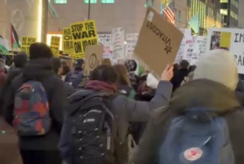 ABD ve İsrail'in İran'a yönelik saldırıların devam etmesi, ülkenin en büyük şehirlerinden New York'ta yeniden geniş katılımlı bir protestoya sahne oldu.