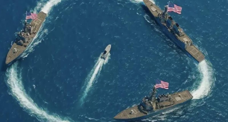 Bu gemiler, deniz piyadeleri, insansız hava araçları, uçaklar ve Sahil Güvenlik birimleri tarafından destekleniyor.
