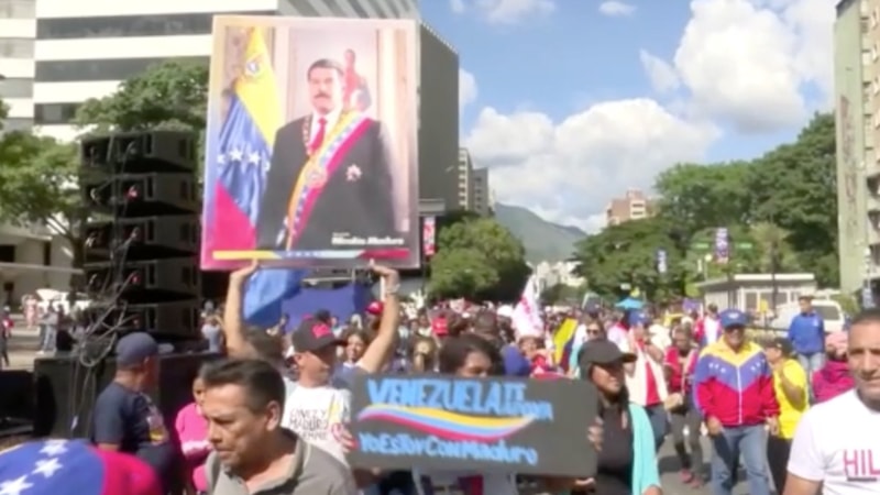 Venezuela Birleşik Sosyalist Partisi (PSUV) öncülüğünde başta başkent Caracas olmak üzere, birçok kentte meydanlara inen yüzlerce Venezuelalı, ABD'ye tepki göstererek Maduro'ya "güçlü" destek mesajı verdi.