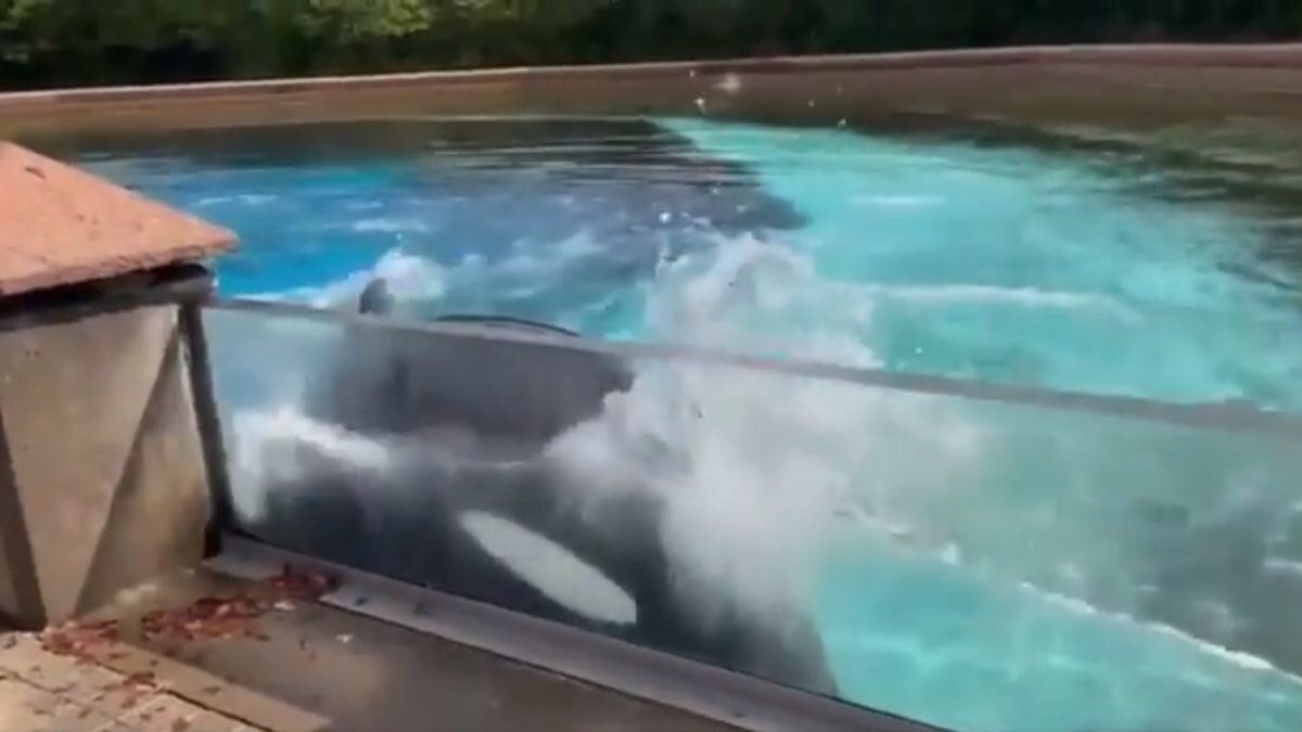 Sosyal medyaya sızdırılan videoda orka türüne ait balinanın kendisini hapis tutulduğu beton tankın duvarlarına vurduğu görüntüleniyor.