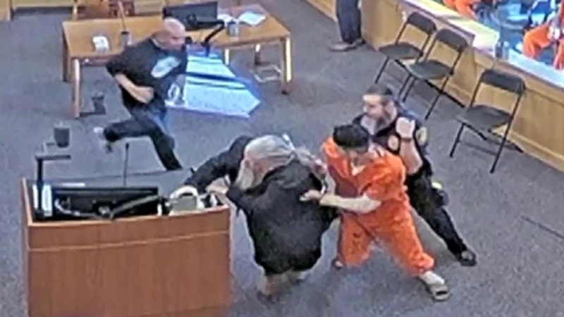 New Mexico'da kızının katilinin yargılandığı duruşmaya katılan acılı aile, savunma yapan sanığa saldırdı. O anlar mahkeme kamerasına yansıdı.