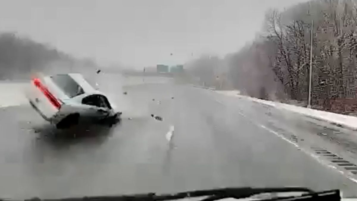 Massachusetts eyaletinde yaşanan kaza, kaygan zeminde seyir halinde olan ambulansın kamerasına yansıdı.