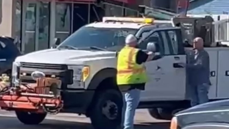 Direksiyon hakimiyetini ele alan hırsız önce geri doğru gittiği arabayı, kendisine engel olmak isteyen silahlı adamın üzerine sürdü.