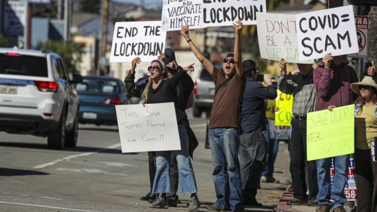 Bu kişilerden bazıları insanlara aşı olmamaları için baskı yaparken, bazıları da koronavirüs aşılarına karşı pankartlar taşıdı.