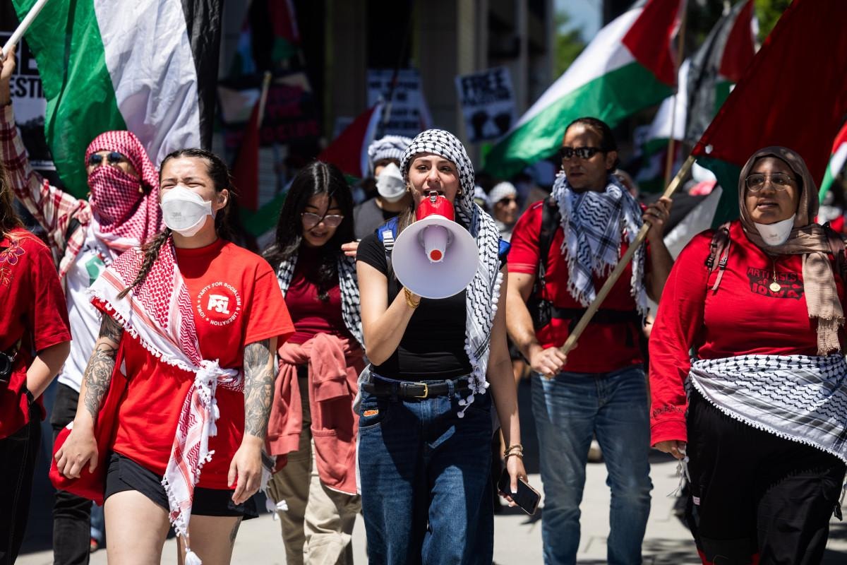 Polisin biber gazı ve sis bombasıyla yaptığı müdahaleye rağmen devam eden gösteride konuşma yapan Filistin destekçisi, “Buradan Biden’a, Kongre’ye, tüm dünyaya mesaj gönderiyoruz” diyerek ateşkes çağrısı yaptı.