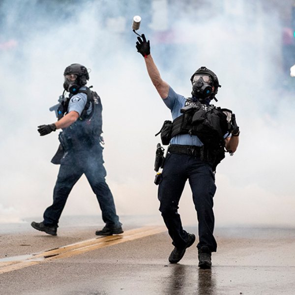 Öfkeli kalabalık sloganlar atarak ABD’deki polis şiddetini protesto ederken, polis ise kalabalığı dağıtmak için sert müdahalelerde bulunarak göz yaşartıcı biber gazı kullandı.