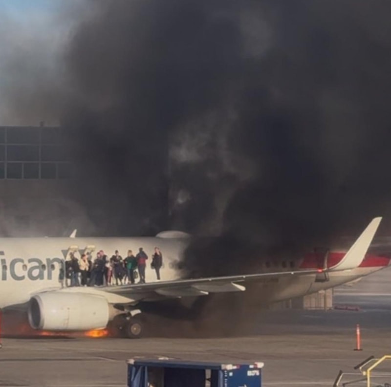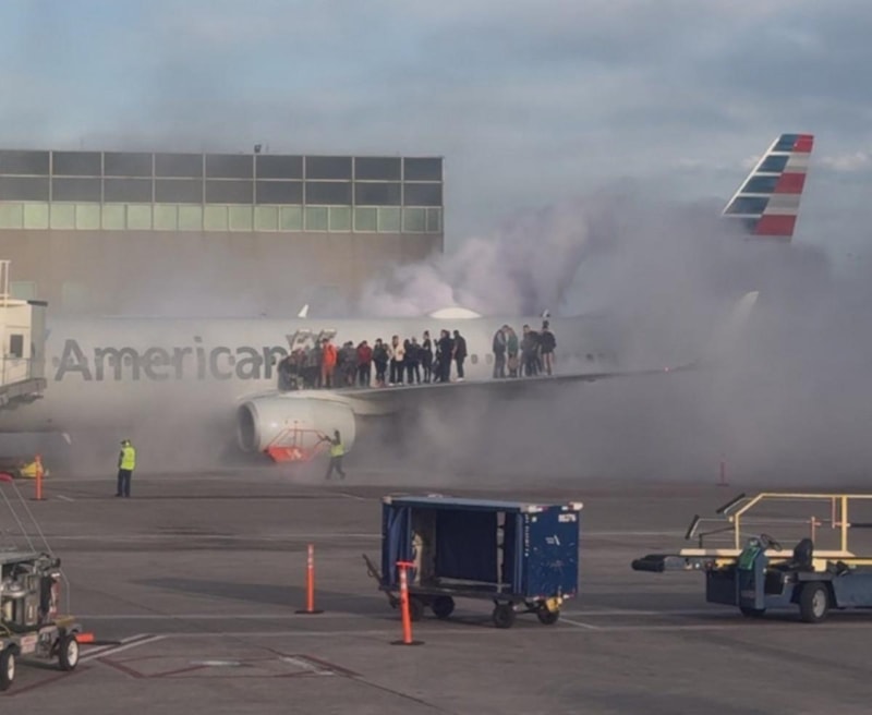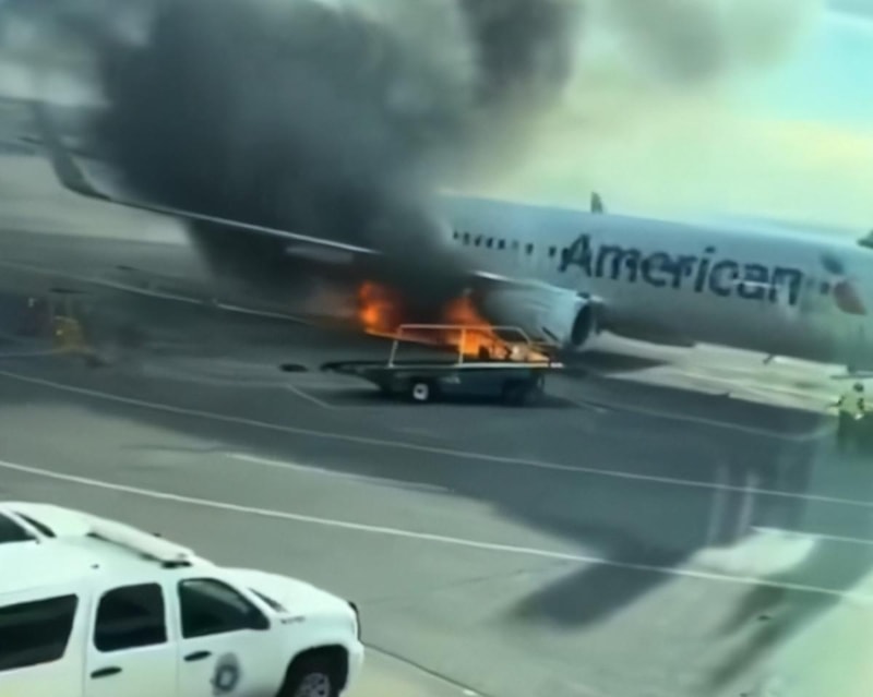 Sosyal medyada paylaşılan videolarda, American Airlines'a ait uçaktan dumanların yükseldiği ve yangın söndürme çalışmalarının yapıldığı görülüyor.